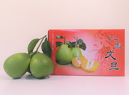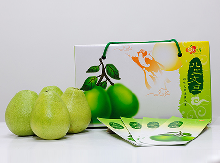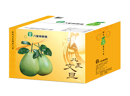 精選文旦柚評鑑比賽等級之文旦柚包裝,每盒6粒包裝精美,糖度10.5度以上、無籽、果皮無病蟲害及機械損傷、經農藥殘留檢驗合格者,始可包裝出售,取名「幸福果饌 八里文旦」。